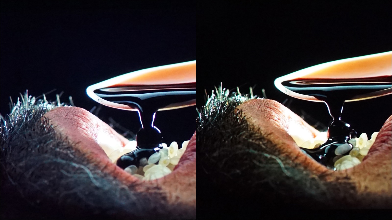 ▲ 왼쪽이 일반TV, 오른쪽이 QLED를 적용한 이스트라 AU750QLED TV 화면이다. 왼쪽은 명암 표현의 한계로 인해 수염이 밝게 떠 보이고, 입술 부분의 채도가 떨어지는 반면, 이스트라 AU750QLED TV는 실제 수염에 가깝게 표현되고, 입술도 사실적으로 구현된다.