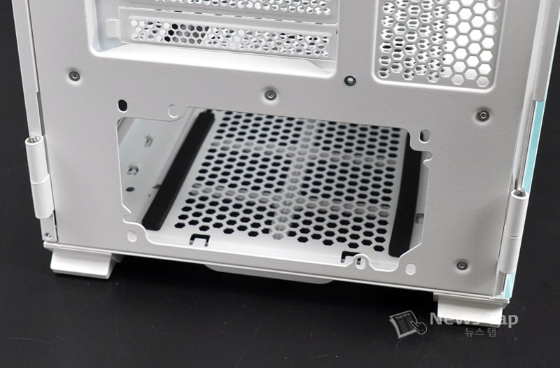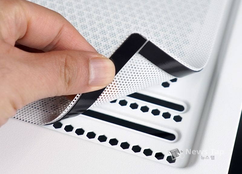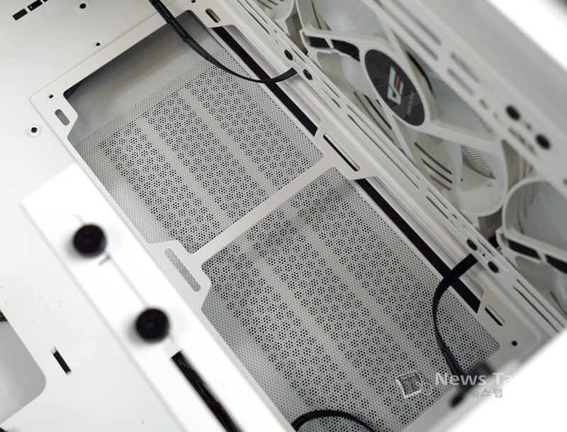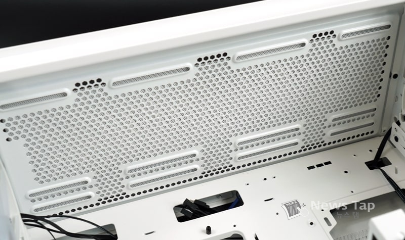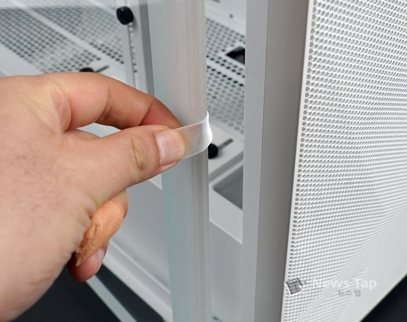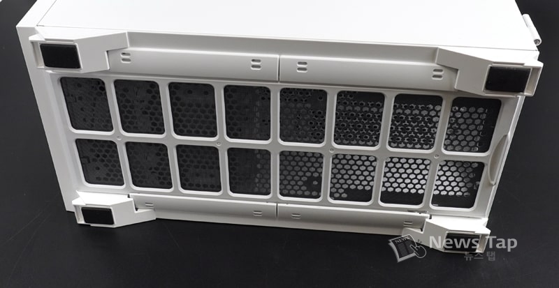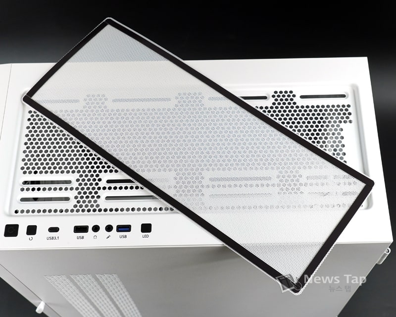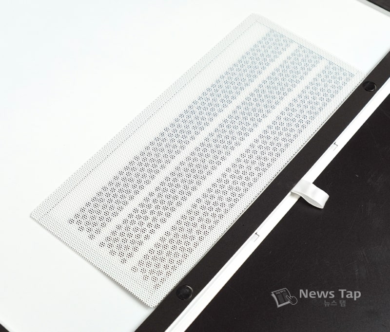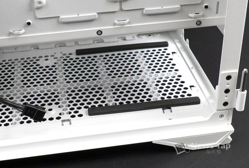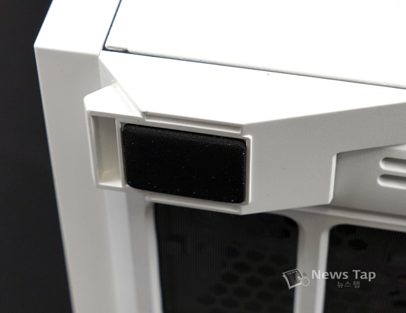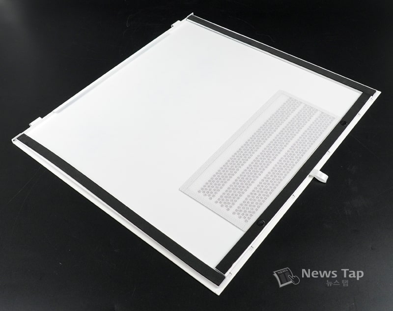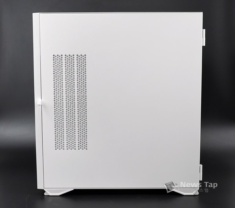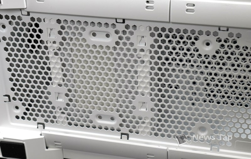 특히 우측 철제 패널에도 통풍을 위한 에어홀을 마련했는데, 여기에도 마그네틱 방식의 기다란 먼지 필터가 달려있다. 아울러 전면 패널에도 필터를 탑재하는 등 그 어느 케이스보다 깔끔한 내부 환경을 유지할 수 있다.