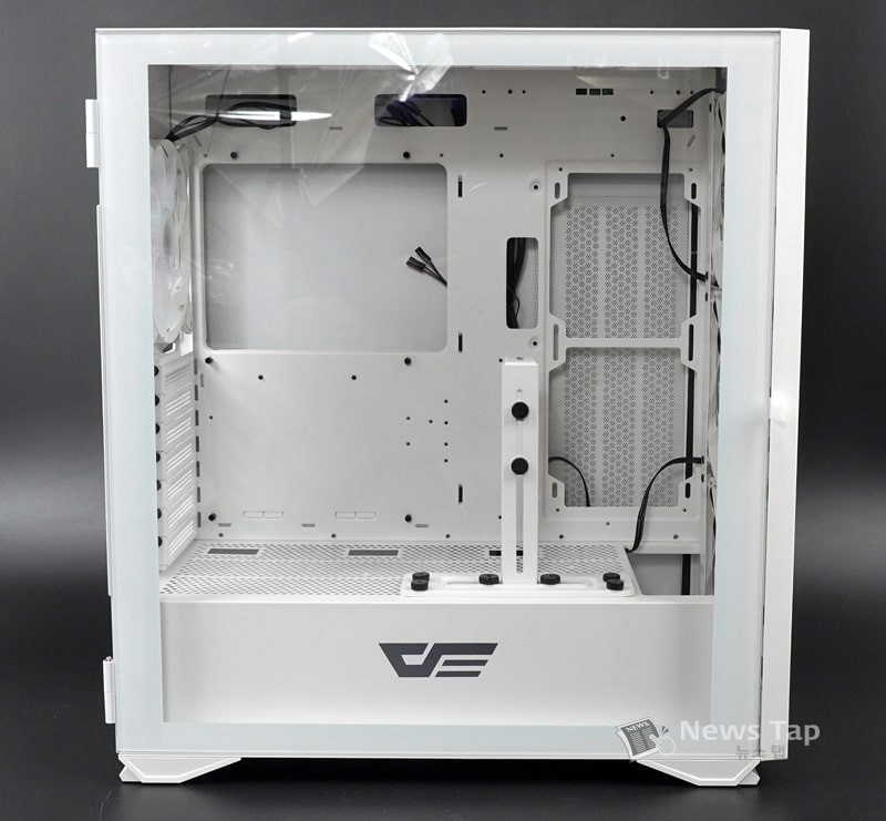 'darkFlash DLX21 RGB MESH 강화유리'의 좌측면 커버는 내부를 훤히 들여다 볼 수 있을 정도로 투명한 강화유리가 사용됐다.