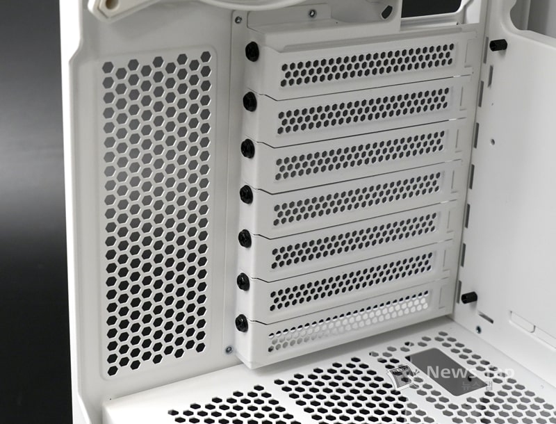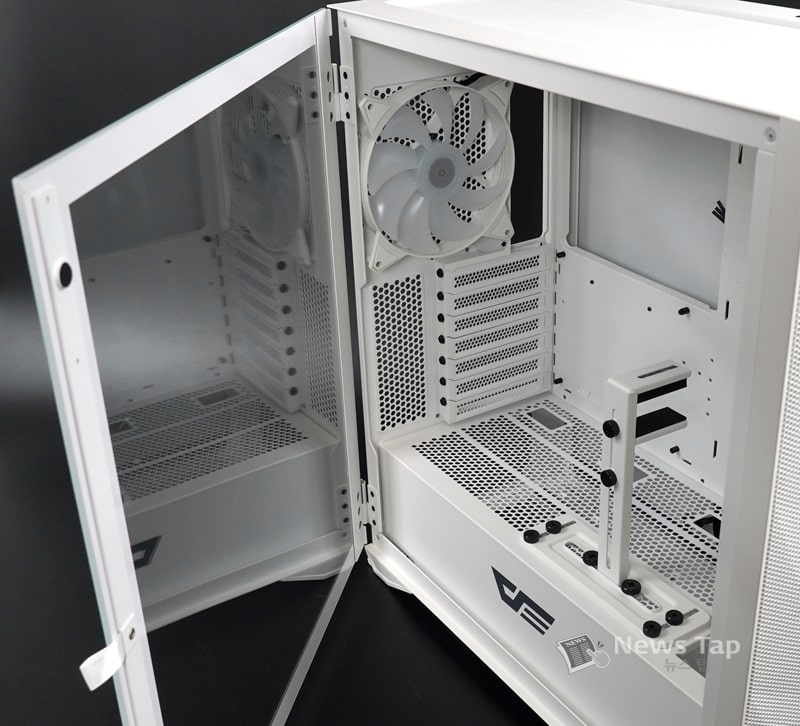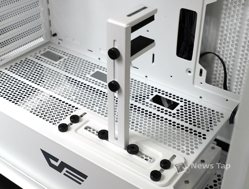 그래픽카드를 장착할 수 있는 PCI 슬롯도 총 7개로 다수의 그래픽카드를 장착하기에 부족함이 없다. 또한 'darkFlash VB-X 4.0 라이저 케이블 지지대 KIT 215mm'를 별도로 구매해 사용한다면, 그래픽카드를 수직으로 장착해 튜닝 효과를 높일 수 있을 것이다.