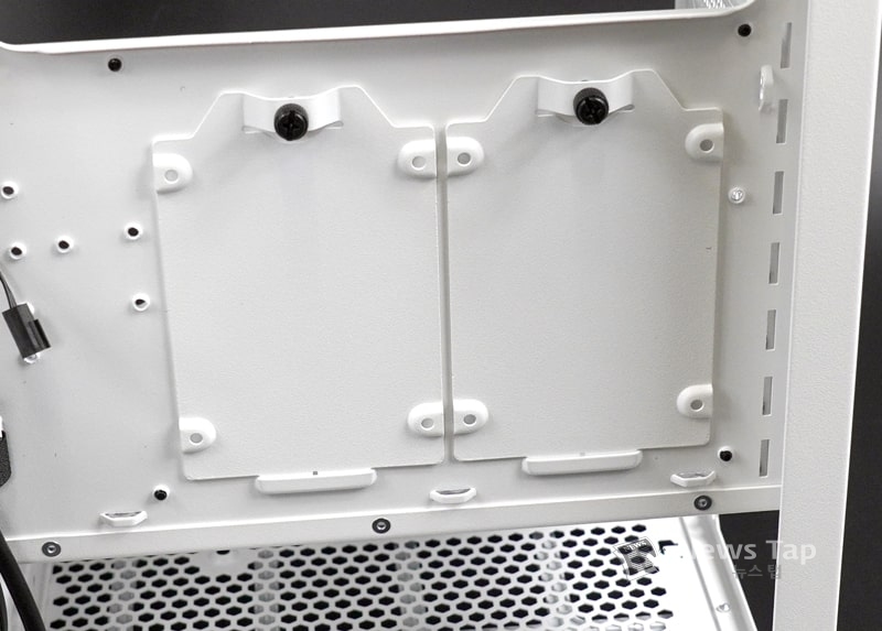 'darkFlash DLX21 RGB MESH 강화유리'는 다수의 스토리지를 탑재할 수 있는 공간도 마련됐다. 먼저 내부 공간에 최대 4개의 2.5인치의 SSD를 장착할 수 있다.