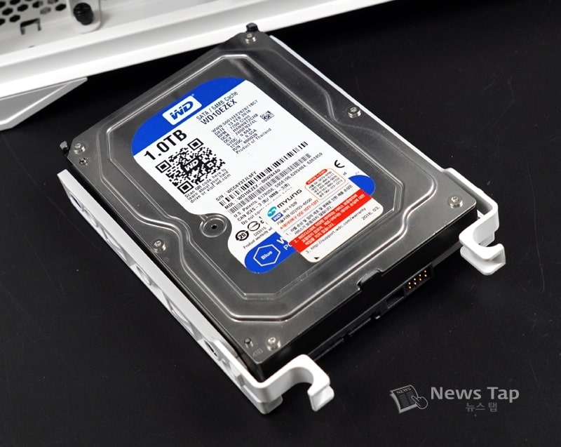 또한 좌측면 하단에 3.5인치 확장 베이가 있는데, 여기에도 2개의 HDD를 장착할 수 있다. 참고로 3.5인치 확장 베이는 2.5인치 스토리지와 호환이 가능하게 만들어졌다.
