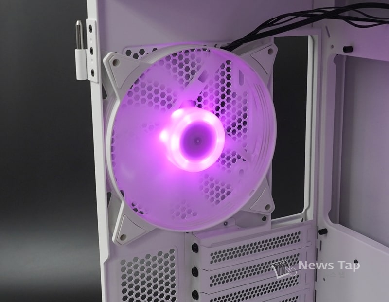 RGB LED가 적용된 쿨링 팬을 장착해 화려한 튜닝 효과를 자랑한다는 점도 멋을 살려주는 요인이다. 특히 쿨링 팬의 크기가 일반 미들타워에 비해 크고, 측면에 자리 잡은 강화유리를 통해 내부가 훤히 보이기 때문에 시각적인 멋은 더욱 커지기 마련이다.