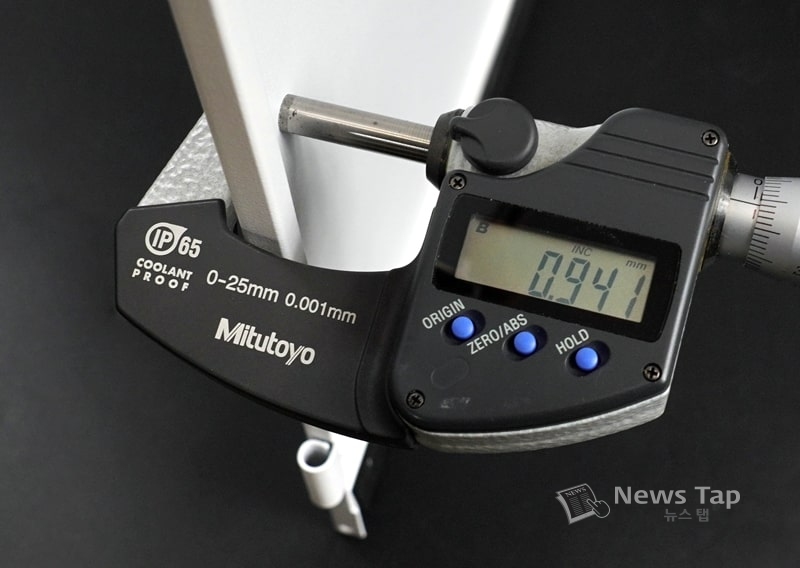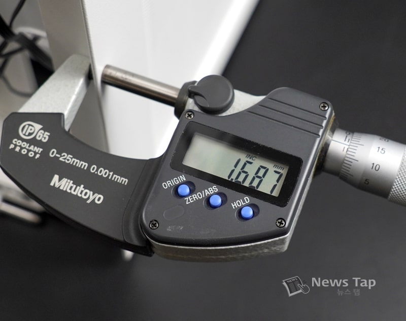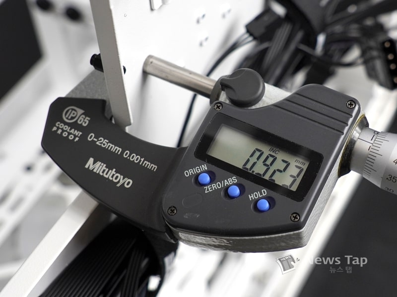 먼저 내부 섀시의 경우 약 0.9~1T 수준의 두께를 갖춘 것을 확인할 수 있다. 동급의 제품의 상당수가 이보다 얇은 섀시를 적용한 점을 비춰봤을 때 그만큼 경쟁력이 뛰어나다고 볼 수 있다. 또한 상단 패널의 경우 약 1.7T로 상당히 두껍고, 측면 철제 패널의 경우 약 0.9T로 상당히 두꺼워 내부 부품을 안전하게 지켜준다.