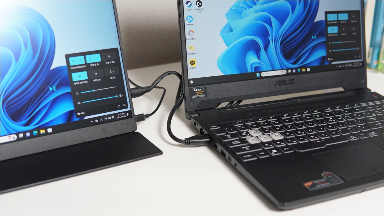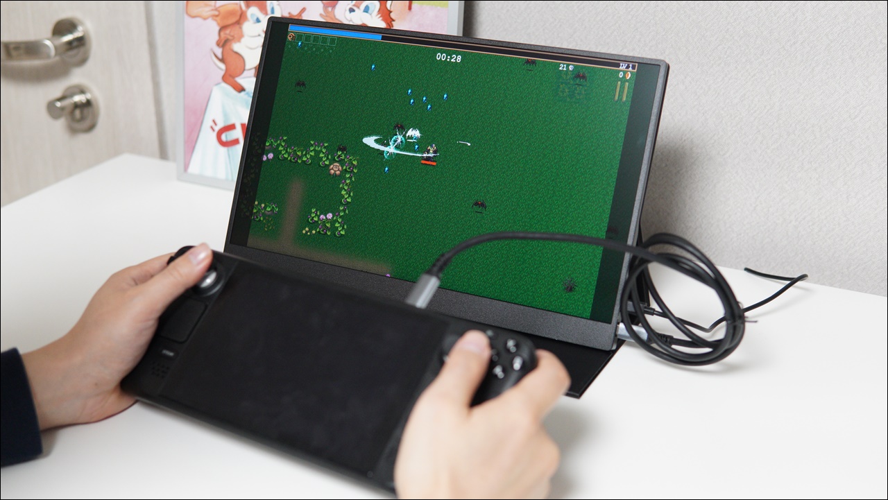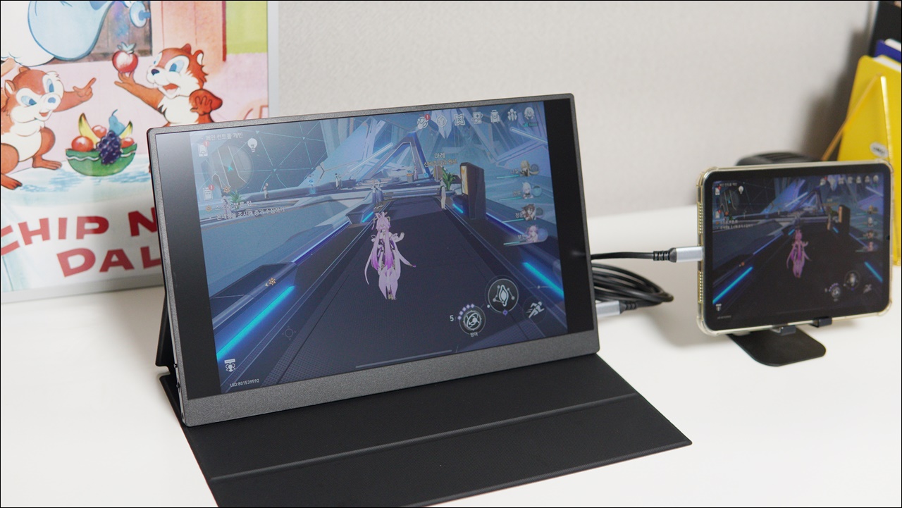 요즘 UMPC가 은근히 인기가 많아서 스팀덱 또는 ASUS ROG ALLY를 쓰는 분들이 많을 텐데요. 마찬가지로 USB-C 포트만 연결하면 바로 큰 화면으로 게임을 즐길 수 있어요. 충전하며 플레이할 수 있어서 더 오래 게임을 즐길 수 있다는 것도 UMPC 사용자에게 꼭 휴대용 포터블 모니터 추천을 하고 싶은 이유 중 하나에요.