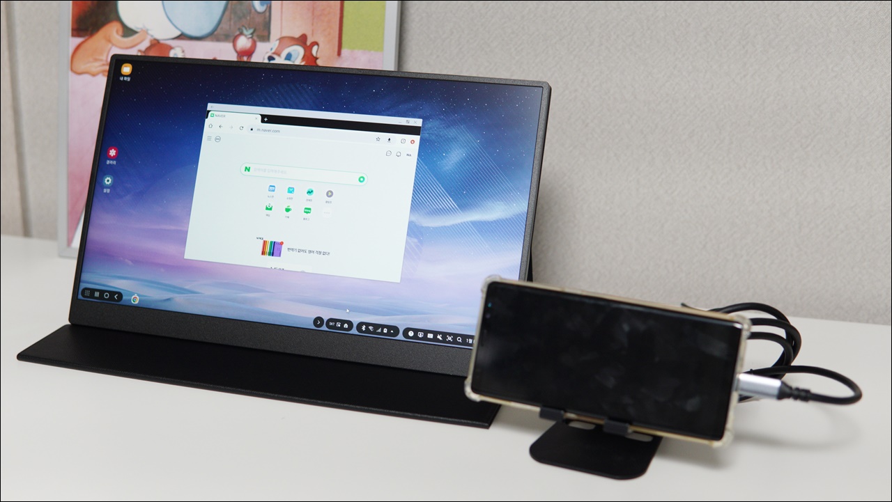갤럭시 스마트폰이나 태블릿을 이용 중이라면 유선 삼성 DeX도 쓸 수 있습니다. 무거운 노트북을 챙기지 않아도 스마트폰과 휴대용 모니터만 있으면 PC처럼 다양한 작업을 할 수 있어서 외근을 다닐 때 정말 간편합니다.