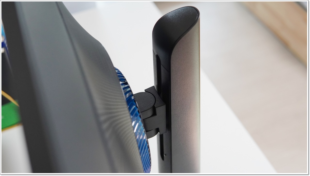 삼성 오디세이 G3 G32A S32AG320의 특징 중 하나는 바로 멀티스탠드가 기본적으로 포함되어 모니터 암이 필요 없다는 것이에요. 피벗(세로 회전), 엘리베이션(높낮이), 틸트(상하 각도), 스위블(좌우) 모두 가능한 구조이며, 기둥 뒤쪽으로 케이블 정리까지 깔끔하게 가능해요.