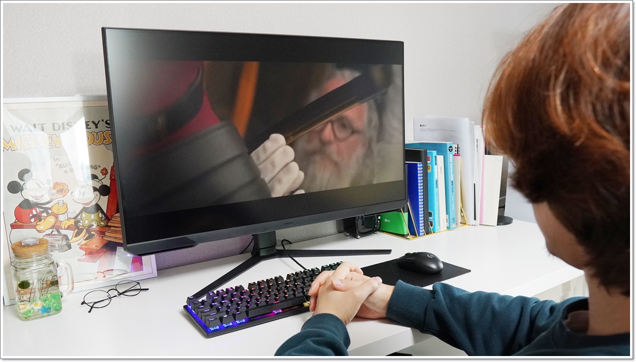 디스플레이는 앞서 언급했듯이, 32인치 모니터로 매우 큰 화면을 제공합니다. TV 선택 시 거거익선이라는 말을 자주 들어보셨을 텐데, 이 또한 화면이 크면 영화나 드라마 감상 시 몰입감이 뛰어나요. 물론 게임을 즐길 때도 눈에 시야가 꽉 차다 보니 그 안에 있는 것 같은 몰입감을 경험할 수 있습니다.