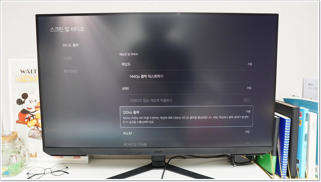 콘솔 게임을 즐기는 분들도 많은데, 32인치 플스 모니터로도 좋습니다. 플스5의 경우 최대 120Hz를 지원하기 때문에 지원되는 게임에 한해 컴퓨터에서처럼 매우 부드러운 게임 플레이가 가능해요. 플스5 기준으로 [스크린 및 비디오 - 비디오 출력 - 120Hz 출력]을 활성화하면 됩니다. 확실히 콘솔 타이틀을 큰 화면으로 즐기니 기존에 눈에 보이지 않았던 부분까지 디테일하게 눈에 들어와 더 재미있더라고요.