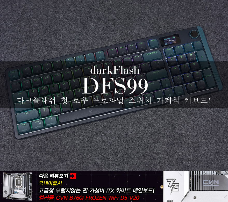 국내 PC케이스 시장에서 가성비로 인지도가 높은 다크플래쉬(darkFlash)는 작년부터 기계식 키보드 시장에도 진출을 했습니다. 기계식 키보드에서도 다크플래쉬다운 저렴한 가격대로 가성비 면모를 보여주려고 하고 있죠. 작년에는 품질보다 저렴한 가격대에 중점을 두었다면, 올해 출시되는 제품들은 디자인, 품질, 가격 모두 경쟁력 있게 갖추고 나오고 있습니다. 특히, 최근에는 키 높이가 낮은 로우 프로파일 스위치를 적용한 슬림형 기계식 키보드를 출시했는데, 바로, DFS99입니다. 그럼, 다크플래쉬의 로우 프로파일 슬림 기계식 키보드 DFS99를 한 번 살펴보도록 하죠.
