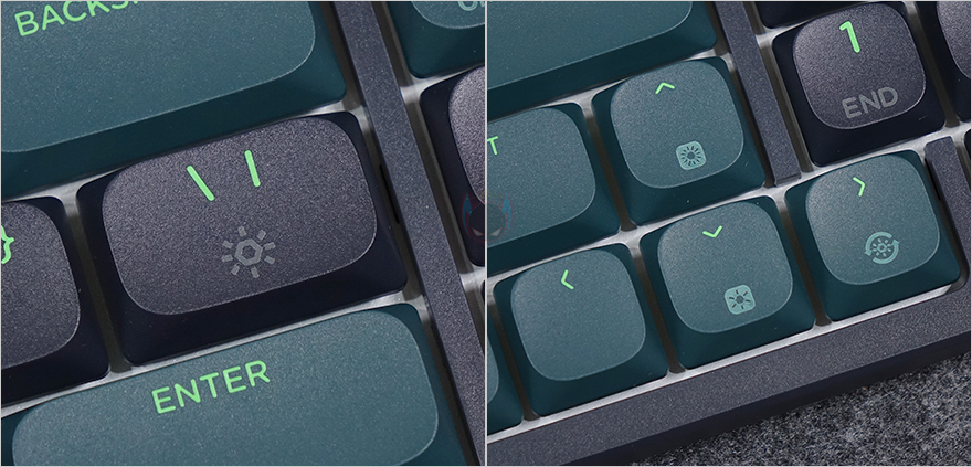 또한, 키보드 전원이 들어오면 RGB 백라이트 효과도 바로 확인할 수 있는데, Fn+\ 키 조합으로 모드 전환은 총 20가지로 할 수 있으며, Fn+상하(▲▼) 방향키를 통해 밝기조절은 Off를 포함 6단계로 조절할 수 있으며, Fn+오른쪽(▶) 방향키를 통해서 색상변경은 RGB를 포함 단색 8가지로 총 9가지 변경할 수 있고, Fn+왼쪽(◀) 방향키를 통해서는 백라이트 방향 전환을 할 수 있습니다. 그리고, Fn+ -/=키 조합으로 백라이트 속도조절 역시 6단계로 할 수 있으며, Fn+X 키로 백라이트 On/Off, Fn+숫자 1/2/3 키 별로 FPS, LOL, 자판 백라이트 모드로 전환할 수 있습니다.