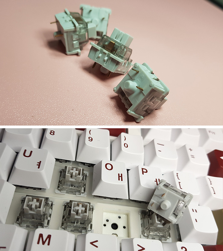 여기서 소개하는 제품에는 회목축 V3 (LEOBOG GREY SW V3) 스위치가 탑재되어 있다. 회목축 V3은 고양이의 가벼운 걸음과 소시지의 탄력이 결합된 듯한 키감이 일품이다.