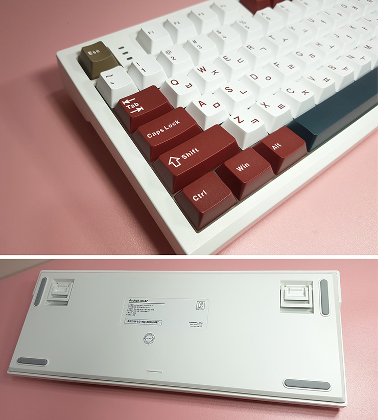 프리플로우 archon AK47를 구매할 때는 네 가지 키캡 색상 중 하나를 선택할 수 있고 그중 여기서 소개하는 제품은 VINTAGE RETRO 색상이다. 빈티지 레트로는 고급스러우면서도 품위가 느껴지는 색상 조합이다.