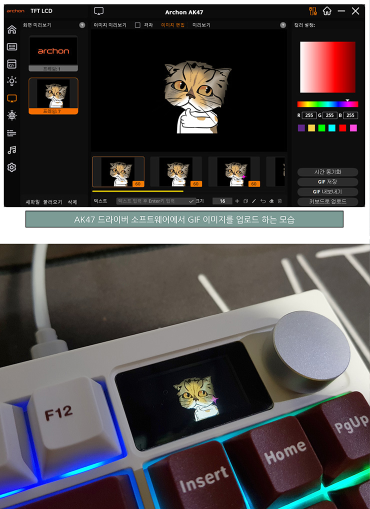 고급 게이밍키보드답게 archon AK47도 다양한 LED 백라이트 이펙트를 갖추고 있다. 키보드와 키캡의 구조상 LED 노출 면적이 적은 편이기는 해도 효과는 확실하며