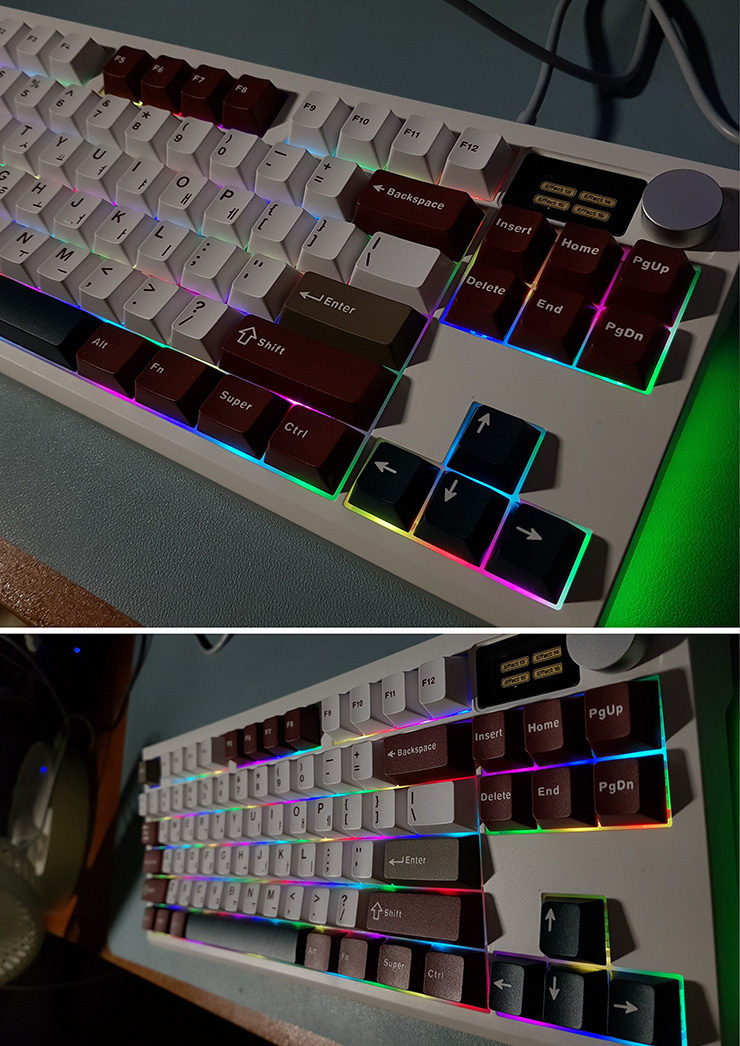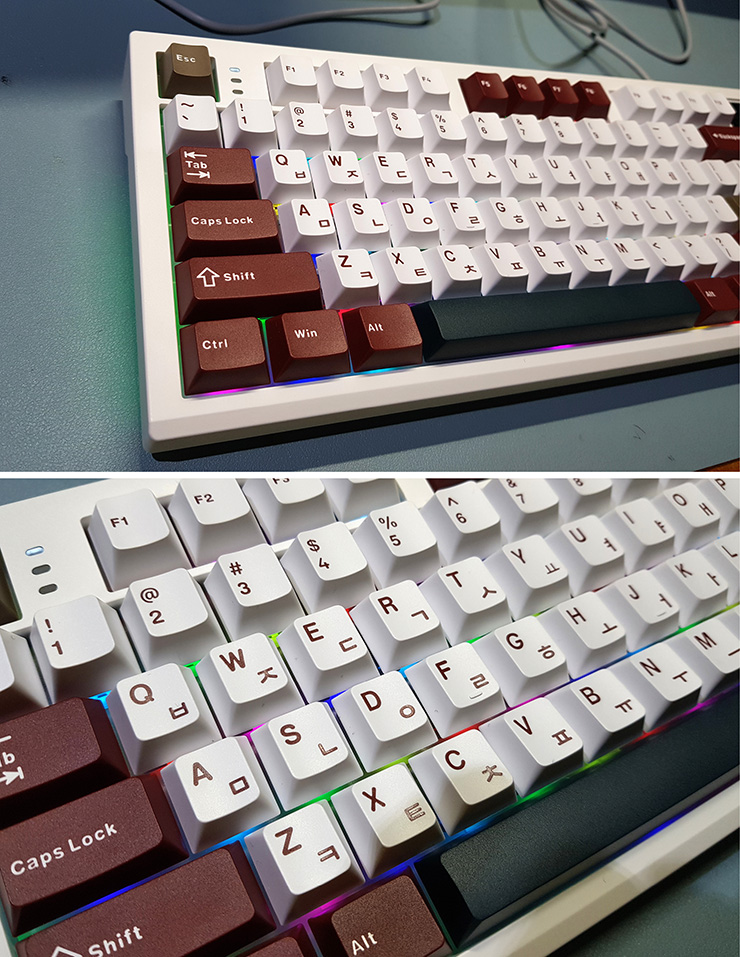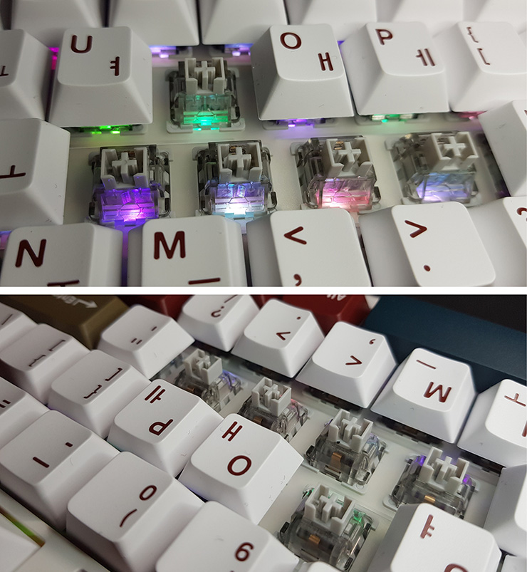 또한 이 제품은 LED가 스위치 앞쪽에 달려있어서 푸딩 등의 투명 키캡을 장착했을 때 다른 키보드보다 더 강렬한 효과를 낼 것 같다.