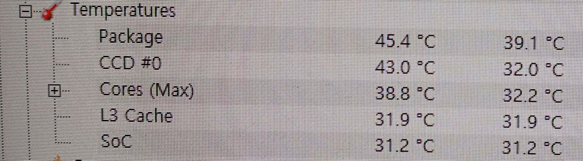 게임 구동시 45도 정도가 나왔습니다.