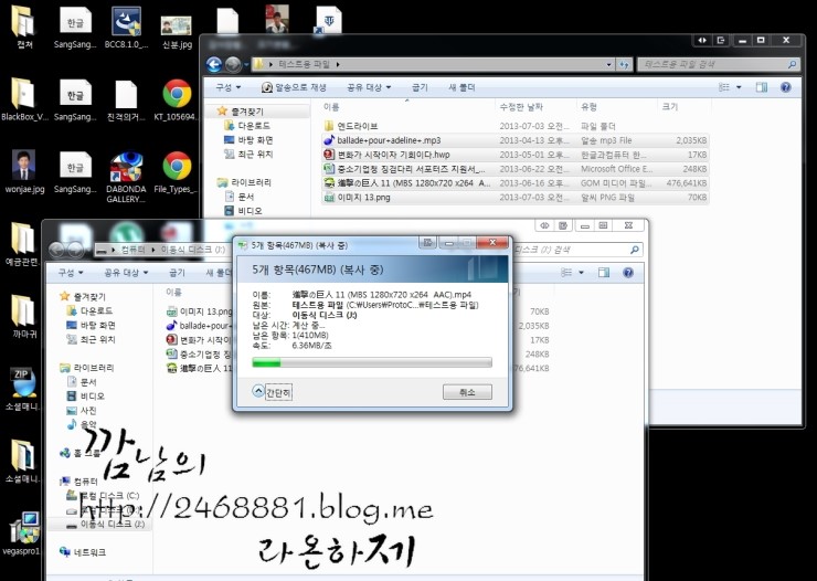 테스트용 파일은 엑셀, 한글(HWP), 영상(AVI, 진격의 거인 _ ), MP3 파일, PNG 그림파일입니다.