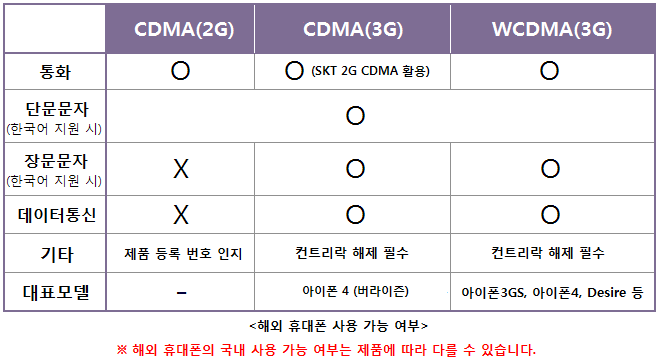해외의 휴대폰을 국내에 가져온다고 모두 똑같이 사용할 수 있는 것은 아닙니다. 특히 CDMA(2G폰)방식의 휴대폰은