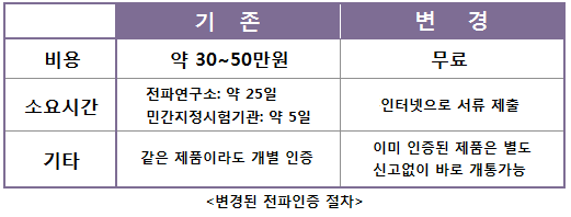 기존의 전파인증 방법은 50만 원 정도의 비용과 한 달에 가까운 시간이 들고 다양한 서류도 준비하여야 했습니다.