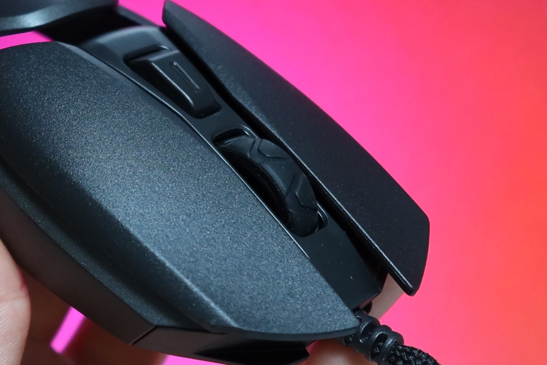 좌측에는 2개의 버튼이 있고 각 포워드와 백워드 버튼입니다. 일반적으로 웹서핑시 뒤로가기나 앞으로가기 버튼으로 많이 사용되는데 게이밍시 버튼값을 설정해서 나에게 필요한 버튼으로 커스텀 가능합니다.