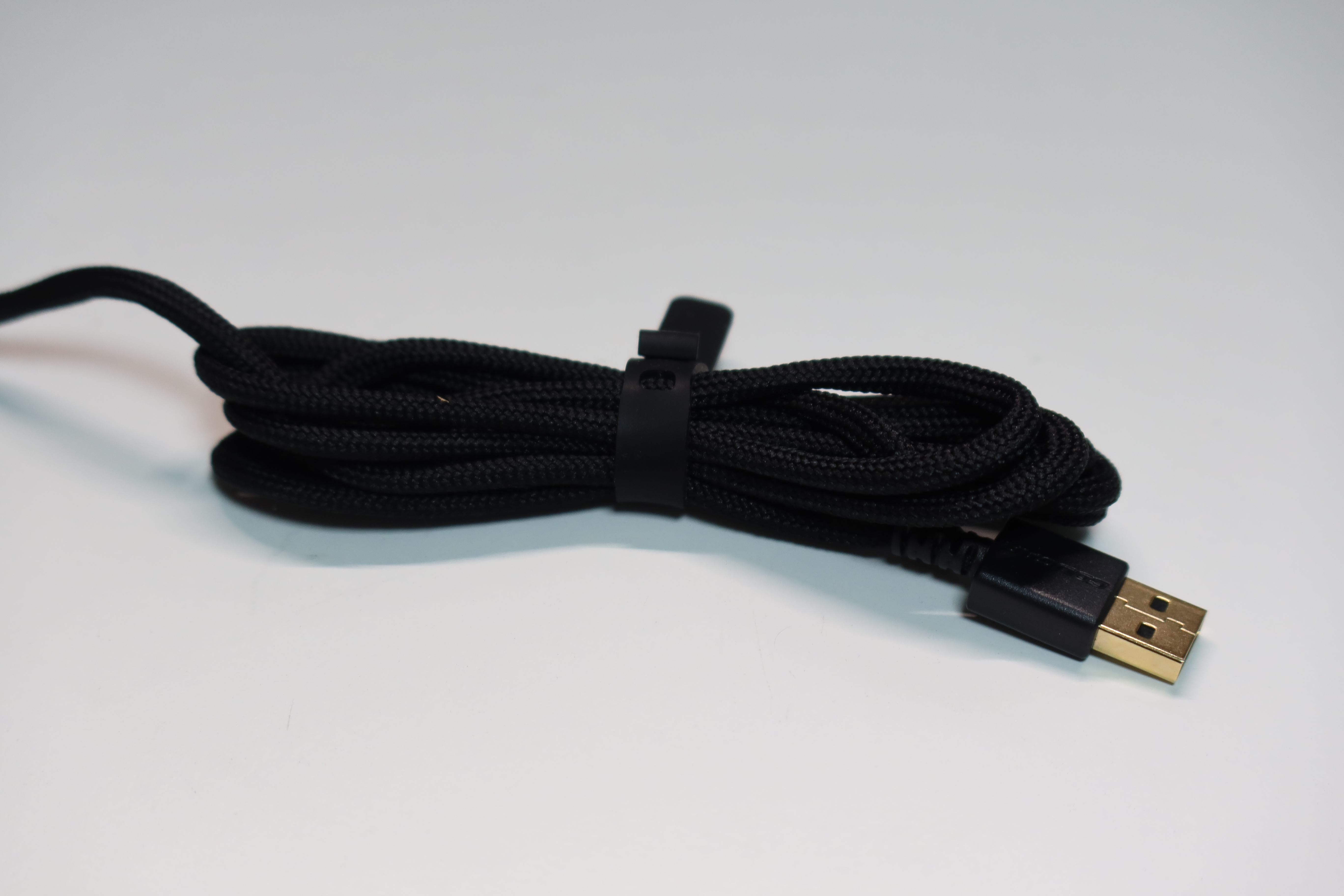 케이블은 울트라플렉스 케이블을 사용했습니다. 고무가 아닌 나일론느낌의 소재인데 일단 유연성이 좋고 책상이나 마우스패드에 닿아도 마찰감이 느껴지지 않습니다. 이정도면 굳이 마우스 번지를 사용할 필요가 없습니다. USB 단자쪽도 금도금으로 부식에 강해 내구성이 좋습니다.