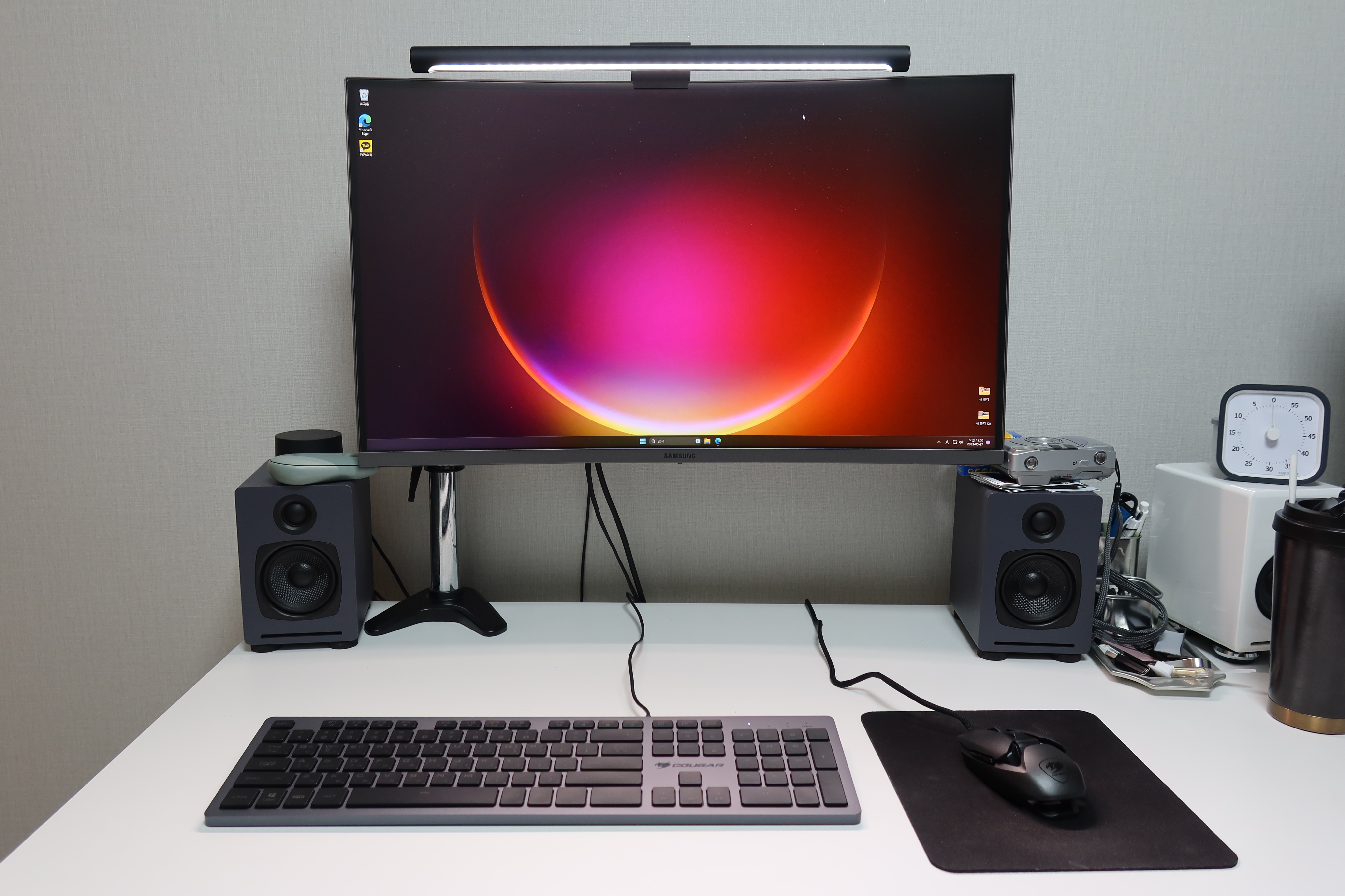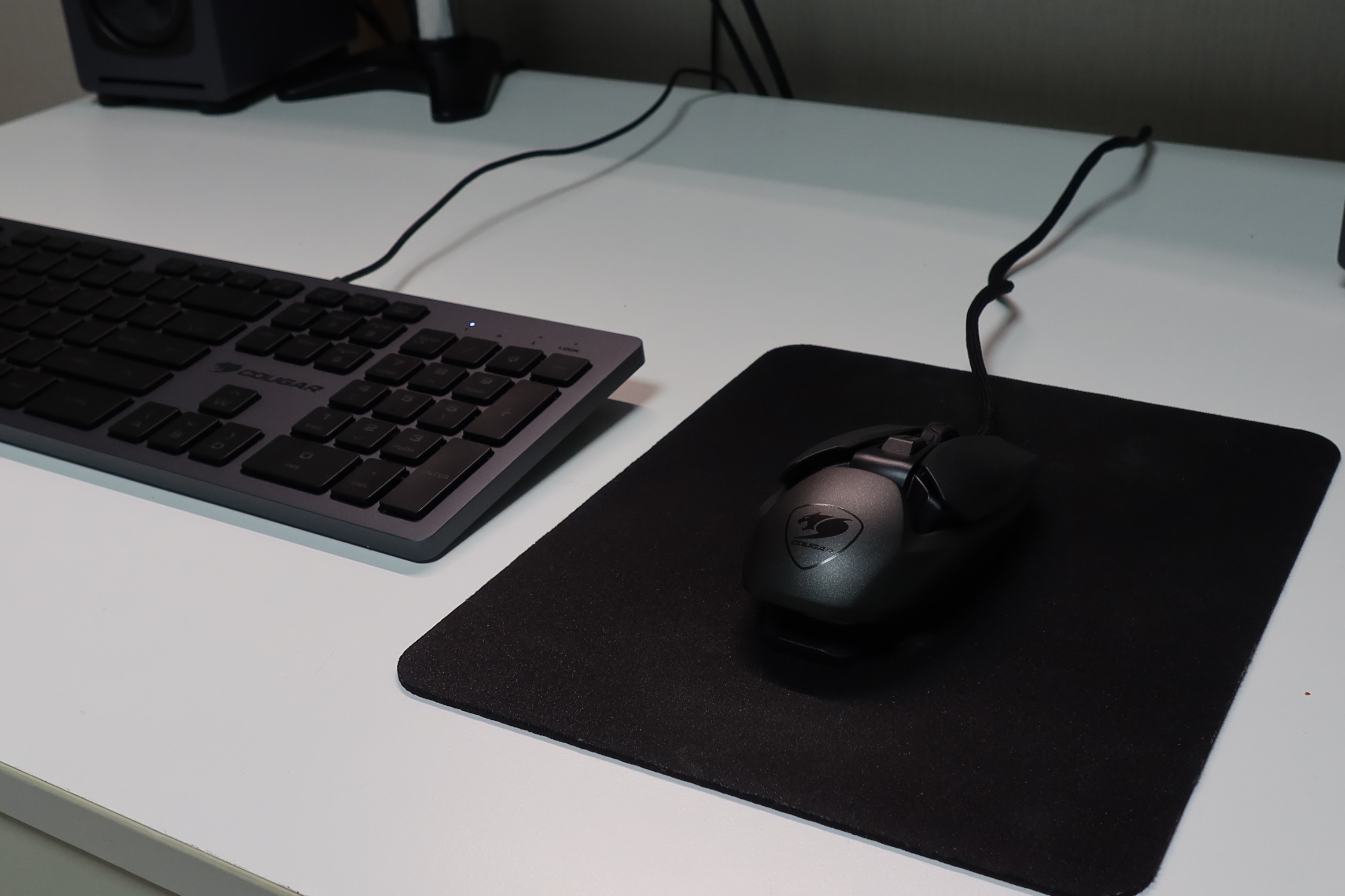 같은 브랜드인 쿠거의 VANTAR AX 키보드와 데스크탑 세팅을 해봤습니다. 같은 알류미늄의 소재와 컬러감이 비슷해 세트처럼 잘 어울립니다.