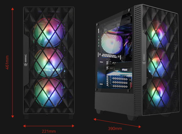쿨링에 효과적인 전면 메쉬 디자인과 LED 쿨링팬 6개(전면 3개 후면 1개 상단 2개)