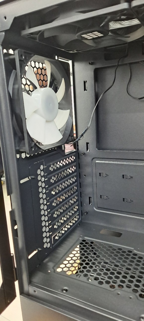 120mm 사이즈의 쿨링팬이 전면부에 3개 , 후면에 1개 , 상단에 2개로
