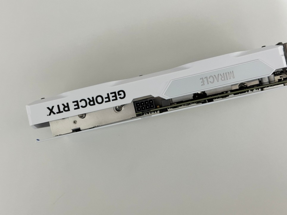 아무리 화이트 감성이지만 성능을 빼고 말할 순 없습니다. 성능을 살펴보자면 베이스 클럭: 1830MHz, 부스트 클럭: 2460MHz, 스트림 프로세서: 3072개를 가지고 있으며 PCIe4.0x16(at x8), GDDR6를 탑재한 제품입니다. 출력 단자: HDMI2.1 , DP 1.4 및 4K, 8K, HDR, HDCP 2.3 지원합니다. 간단하게 정리하면 FHD 급 모니터로 게임을 즐기시는 분들이라면 원활한 환경에서 플레이가 가능합니다.