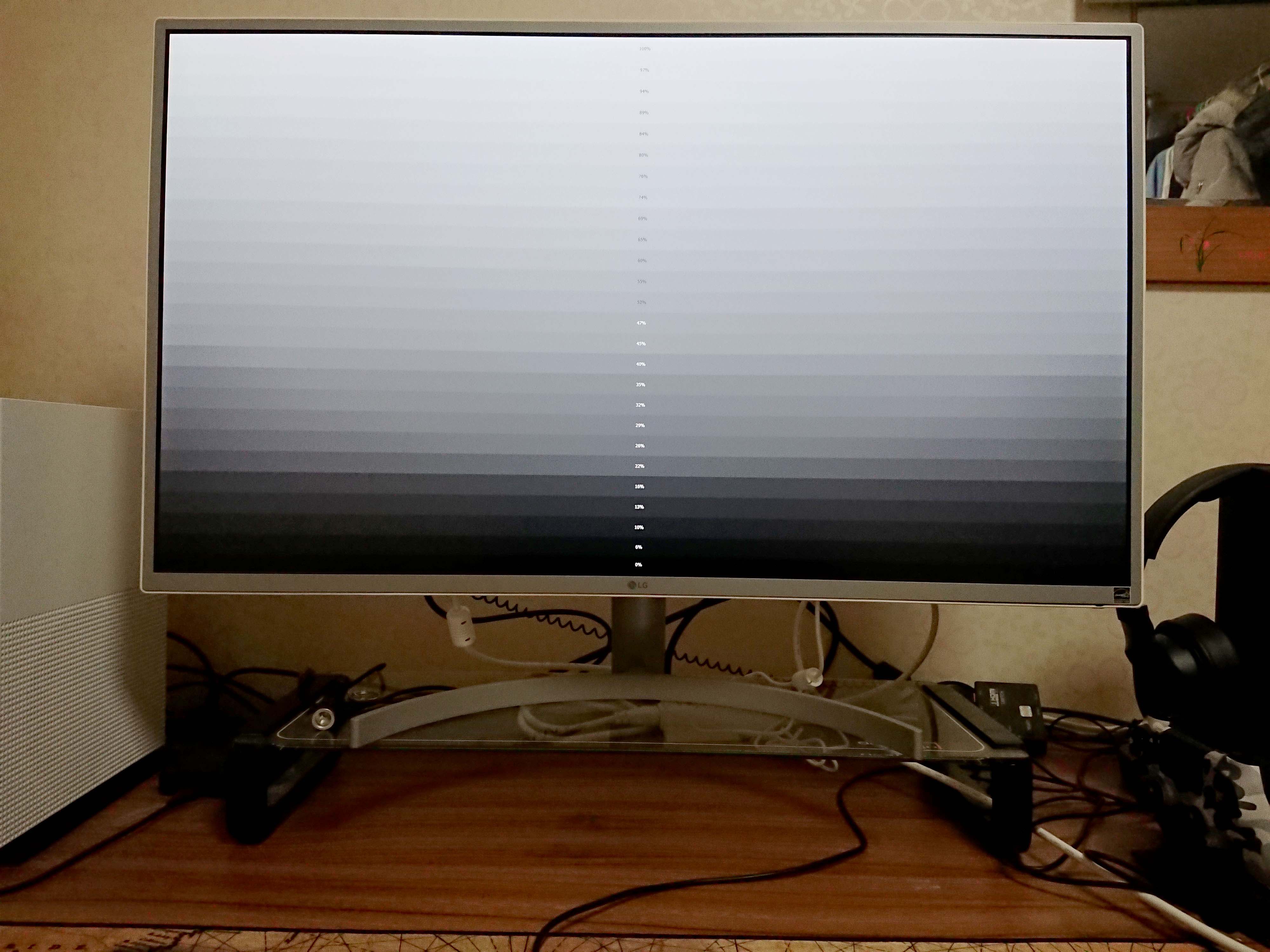 모니터 제품을 받으면 대부분 가장 먼저 하는 것이 양품 유무의 판별이 아닐까 합니다. 저 역시 제품의 이상 유무를 가장 먼저 따져 보는 타입인데, 모니터에서 가장 중요한 부분이 패널이기에 패널부터 여러 가지 테스트를 해 본 결과, 불량화소는 단 하나도 발견하지 못했으며, IPS 패널 특유의 빛샘현상도 지금까지 사용해왔던 IPS 패널의 제품에 비교하여 가장 양호한 수준이었습니다. 시야각을 포함해서 IPS 패널 자체의 퀄리티는 상당히 만족스러웠습니다. 하지만 패널의 퀄리티는 뛰어난 반편 패널을 둘러쌓고 있는 프레임 특히 은색 프레임을 감싸고 있는 바깥쪽의 흰색 프레임의 사출 퀄리티가 일정하지 못하여 위와 같이 은색과 흰색 프레임에 사이 일부분에 갭이 크게 있던 것은 다소 아쉬웠습니다. 이러한 현상은 위에 첨부한 사진 이외의 부분에서도 2군데 이상 더 발견되었기에 제품의 뽑기 운 이라기 보다는 보급형 제품이기에, 패널의 퀄리티와 프레임의 퀄리티 모두를 취하기보다는 패널의 퀄리티만을 취한 것으로 보입니다.