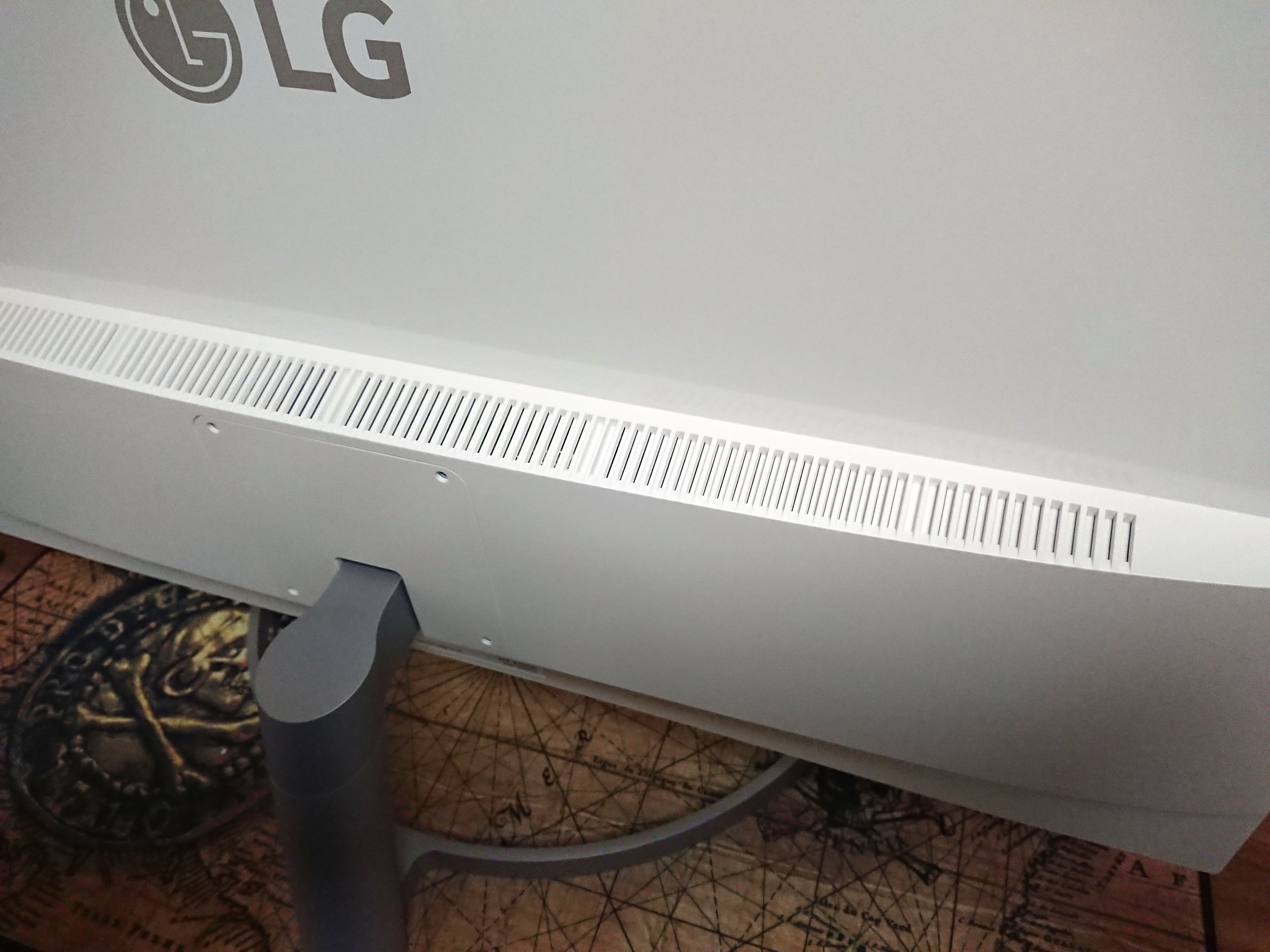 후면의 스탠드와 모니터는 VESA 홀 규격으로 결합되어 있기에, 스탠드를 분리하여 모니터 암과의 연결도 가능합니다