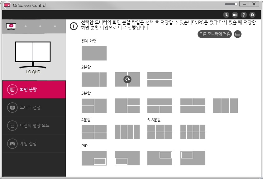 OSC(On Screen Control)를 통한 화면 분할 기능