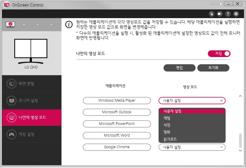 OSC(On Screen Control)를 통한 나만의 영상모드