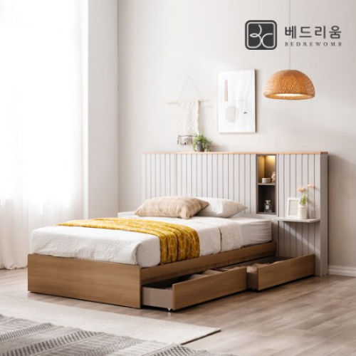 베드리움 리디아 원목 LED침대 SS+패널2개 [본넬스프링]