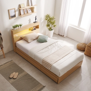 보니애가구 헤일리 3단 서랍형 수납 LED침대 Q [코지본넬]