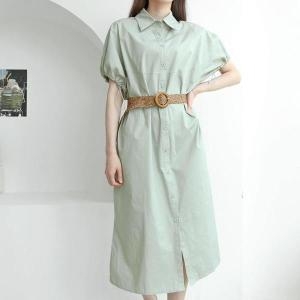 셀러허브 여자 혁대 카라 썸머 롱셔츠 통소매 롱원피스 S10126703 상품이미지