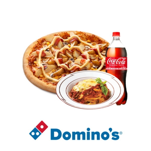 도미노피자 포테이토(오리지널)+뉴치즈볼로네즈스파게티티 [라지+콜라1.25L] 상품이미지