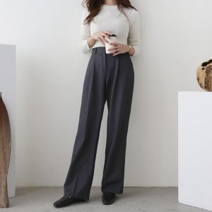 여자 놈코어 와이드 일자 정장바지 밴딩 스판 슬랙스 WP8199 - 에누리 가격비교