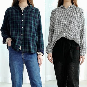 둥근카라 면 체크 블라우스 엄마옷 미시옷 DY126YC 상품이미지